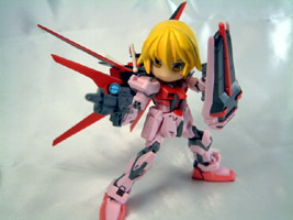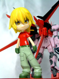 ■製作解説:JYUKIさん■ 「父を…ウズミ・ナラ・アスハを呼べ! 私は…私は、カガリ・ユラ・アスハだ!」 ・・・に、見えたらいいなーと。 いや、ラクスとかに比べて作りやすそうだったもので(^^ゞ 髪はピンキーアヤナミを「型想い」+「木工用パテ」で強引に複製後、 適当にパテで修正してます。 あとはポケットやホルスター、手袋などをパテで。 普通のピンキーぽく見えればいいかなと。 ネタで MS IN ACTION の頭と挿げ替え。 エールユニットは食玩「A−styling」から。 簡単改造で装備でき、IN ACTIONと違って羽部分がヘタレないのでおすすめ です。 それにしても最近のIN ACTIONはできが良くなってたんですねー、知らん かったです(^.^) >WFで実物を手に取り、そのまま持って帰りたくなったであります。<MOMOMO軍曹> |